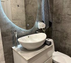 Все продумано: большие номера, стильный ремонт, чистота идеальная, кровати шикарные. Уверенная 5. Рекомендуем!