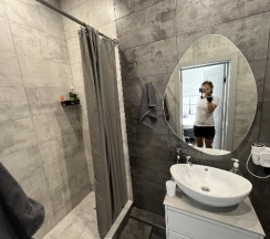 Все продумано: большие номера, стильный ремонт, чистота идеальная, кровати шикарные. Уверенная 5. Рекомендуем!