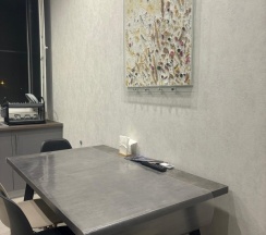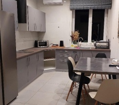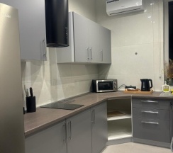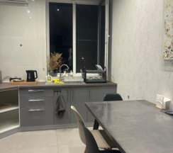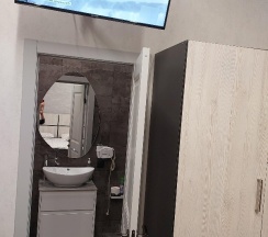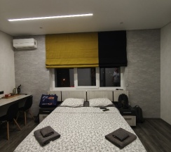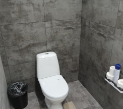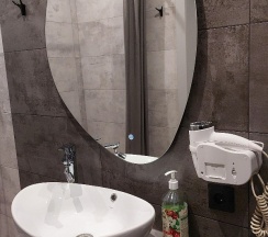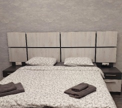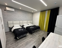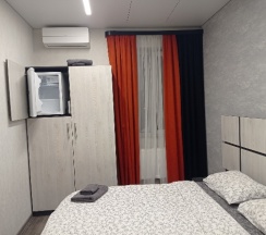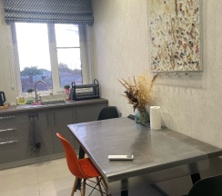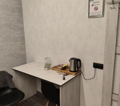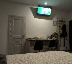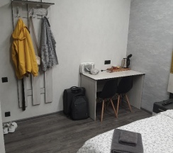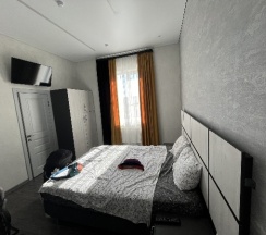 Отличная современная гостиница. Чистота во всех помещениях. Останавливались на одну ночь. От центра далековато, но на машине без проблем доехать за 5-10 минут в любую сторону. Гостиница находится в частном секторе, тишина. Рядом пара магазинов продуктовых. На первом этаже есть общая кухня со всем необходимым. Мы завтрак брали, выдают сухпайком, все свежее и вкусное, объем и разнообразие большое, все не съели, забрали с собой. Есть доска и утюг для глажки.