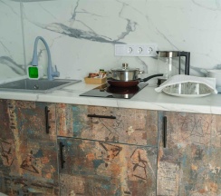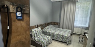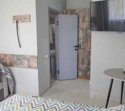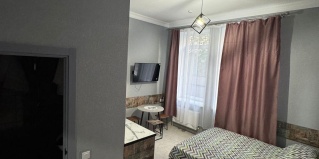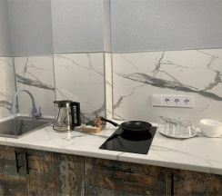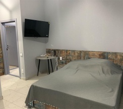 Комната с двуспальной кроватью 160/200 см (доп.места под запрос, доступно не во всех номерах). Есть собственная кухня с необходимой техникой и посудой. К услугам гостей wi-fi, телевизоры c поддержкой WINK, ОККО. В каждой комнате теплый пол, сплит система, холодильник, чайник, электрический полотенцесушитель, мыло, шампунь, набор полотенец, тапочки, зубные щетки и пасты, расчески, наборы гигиенические и швейные, чай, кофе, сахар.