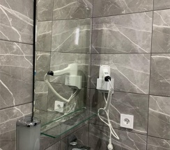 Во всех комнатах есть wi-fi, телевизоры c поддержкой WINK, ОККО, теплый пол, сплит система, холодильник, чайник, электрический полотенцесушитель, наборы гигиенические. Оснащение зависит от выбранной категории.