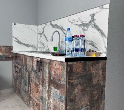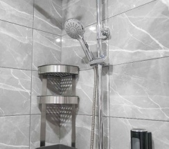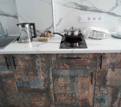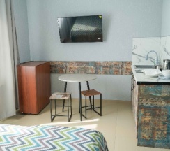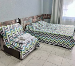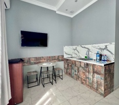 Гостиница находится в пару минутах от трассы на юг, очень удобно. Рядом много магазинов и мест для перекуса. До Меги 5 минут на машине. Сама гостиница двухэтажная, номеров не много. Всё «свежее» и новое (гостиница недавно открылась). Быстрое и комфортное заселение и выселение. В номере есть всё необходимое: стиральная машина (средства для стирки предоставляют), набор для шитья, сушилка для вещей. В номере есть быстрый инет, тв с мультиками для деток. Кровать удобная, широкая, дополнительные места (мы были в 4 х местном номере) оставили плохие впечатления - для у кого больная спина - спать лучше на кровати. Немножко слышно улицу (когда проезжают автомобили или шумят местные, но не критично), входная дверь МДФ с уплотнителями, но шумоизоляции это не помогает (дверное полотно установлено чуть криво - ночью ярко светилась щель - свет из коридора): каждый шаг в коридоре (как сосед тащит чемодан) - всё слышно.