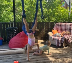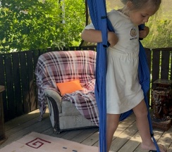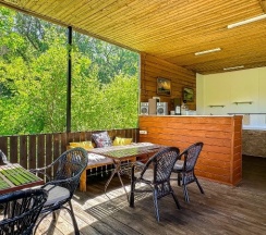 На общей кухне-веранде ковер для игр деток,гамак,качели ,большие столы и очень комфортные кресла