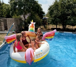 Бассейн-очень чистый,крайний раз даже на море не ходили,проводили все время на улице,на территории,отдохнули замечательно🔥Хозяева-доброжелательные,приятные люди)Видно,что вкладывают душу в это место.