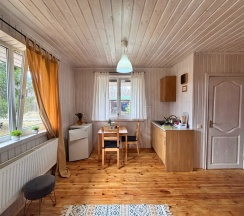 Чистый и довольно уютный дом. Теплые полы и необходимые мелочи в наличии. Живописная дорога через лес к озеру. Остались очень довольны визитом.