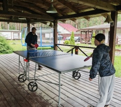 Чистая, ухоженная территория, на которой растут ели, березки, а вокруг настоящий сосновый лес. Для детей есть детская площадка, огромный батут, качели. Для взрослых теннисный стол. Рядом с базой находится Ладожское озеро и г. Приозерск, где можно погулять, перекусить.