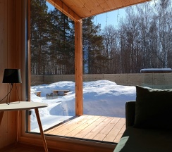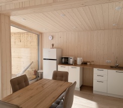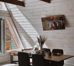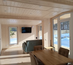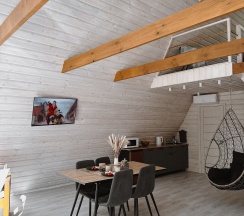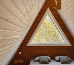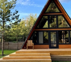 Очень понравился домик А-фрейм. Расположение прекрасное, вокруг лес, огромная территория, всё чисто и ухоженно как снаружи так и внутри домика! Всё необходимое есть.