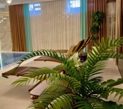 Отель " Оазис" - это комфортабельный и уютный отельный комплекс в Махачкале. Гостиница располагается в тихом районе города, всего в 20 мин езды от аэропорта "Уйташ". Поблизости от отеля находятся : озеро "Ак-Гель", мечеть, парковые зоны для отдыха, кинотеатр, рестораны, магазины, автомойка и др . В пешей доступности (20-30 мин) находится море с новой набережной зоной. Отель "Оазис" выполнен в неоклассическом стиле интерьера, а SPA комплекс дополнен нотками восточного стиля. Наш отель включает в себя номера в различной категории комфортности (люкс, комфорт, стандарт) полностью оснащенные всем необходимым для комфортного проживания. Номера украшаются панорамным остеклением , имеют кровати с ортопедическими матрасами. Завтрак по меню входит в стоимость номера и SPA зона с 7:00 до 11:00 утра.