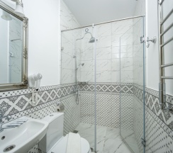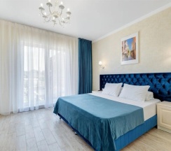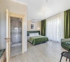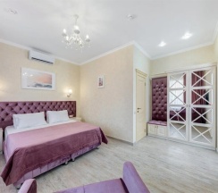 Четырех местный двухкомнатный номер с возможностью размещения 5-го гостя за дополнительную плату, отвечает всем современным требованиям комфорта и отдыха, оборудован индивидуальной системой климат контроля, кроватями размера «King Size» с ортопедическим матрасом и мягким изголовьем, журнальным столиком, стульями, выходом в интернет, холодильником, питьевой водой, телевизором с плоским экраном и звуконепроницаемыми окнами. В вашем распоряжении ванная комната с душевой кабиной, феном и косметическим принадлежностями. К услугам гостей уборка номеров, прачечная, заказ экскурсий, румсервис.