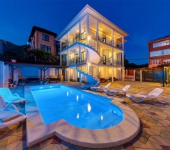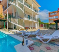 Отличный отель! Отдыхали с детьми в конце мая, понравилось абсолютно все: Шикарный бассейн с подогревом, очень чистый, дети плавали с удовольствием; Чистые номера с хорошим ремонтом и мебелью, белоснежным бельём и полотенцами; Уютная территория отеля с беседками и мангальной зоной, современная кухня, где все продумано до мелочей; До набережной минут 15 по алее с большими соснами.