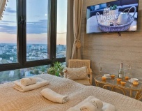 Апартаменты прям зачётные. Стиль необычный, сразу видно – вложились. Расположение – то что надо, кафешки и магазины под боком. Заселился без проблем. Остался доволен.