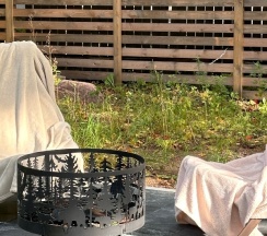 После прекрасного ужина и выпитого вина, погреть ноги у костра, такая редкость👍