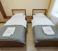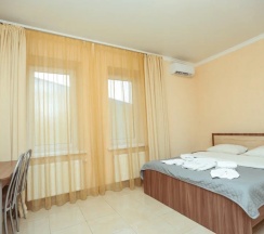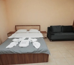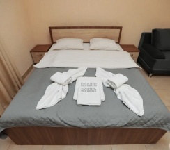 Отличный отель! Приветливый и дружелюбный персонал. При въезде в город немного заблудились, связывались с администратором Ириной, она помогла разобраться с дорогой. Спасибо большое! Просторный номер на двоих, как квартира-студия с холодильником, плитой, микроволновкой и минимальным набором посуды (кастрюля, сковорода, тарелки и столовая приборы). Питание завтрак-обед -ужин включено, всё можно взять в холодильнике и разогреть в номере. Что очень удобно. В номере телевизор, кондиционер, хорошая душевая кабина. Уборка идеальная. Рядом магазин "Магнит" и кафе. Бесплатная парковка. Остались очень довольны, несмотря на удаленность от центра. Но цена-качество перекрыли этот недостаток. Только положительные эмоции!