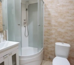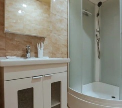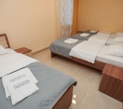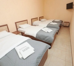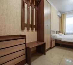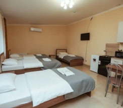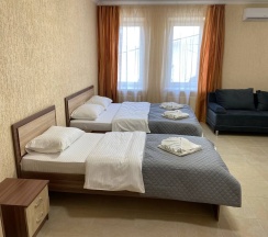 Уютный двухкомнатный номер с раскладным диваном и 3мя односпальными кроватями. Имеется всё необходимое для комфортного проживания: холодильник, микроволновая печь, электро плита с духовым шкафом, посуда для приготовления пищи, телевизор, электрочайник, бесплатный wi-fi, туалет и душ.