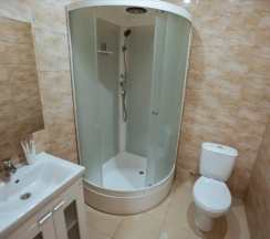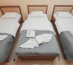 Уютный трехместный номер с удобствами . Имеется всё необходимое для комфортного проживания: холодильник, микроволновая печь, электро плита с духовым шкафом, посуда для приготовления пищи, телевизор, электрочайник, бесплатный wi-fi, туалет и душ.