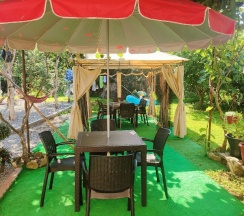 Нам понравилось! На территории сад, бассейн, мангал, беседки, столики, уютно и чисто. Добрые, приветливые хозяева.