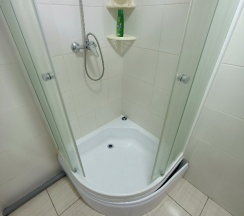 В номере чистое бельё - выдают полотенца и тапочки , есть душевая кабина и сан узел ( раздельно) .