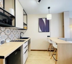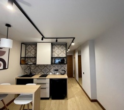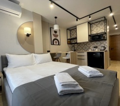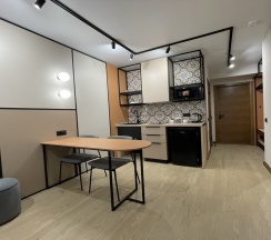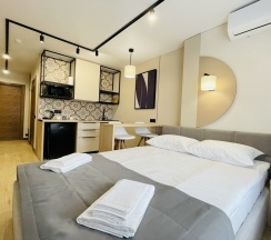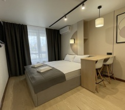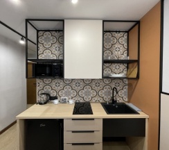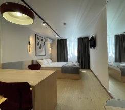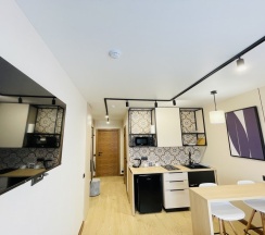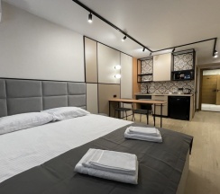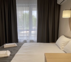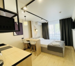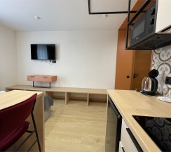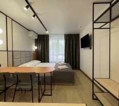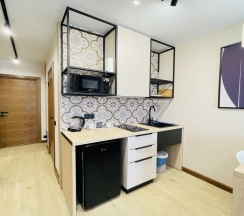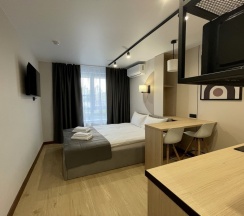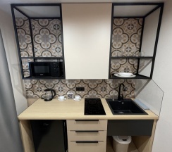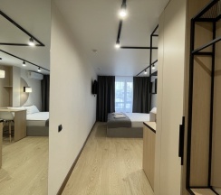 Двухместный дизайнерский, современный номер с кухонной зоной и кондиционером. Идеально подходит для комфортного размещения, в том числе для длительного проживания.