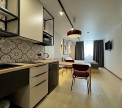 Изысканные номера с авторской отделкой, оборудованы современной кухонной зоной со всеми удобствами.