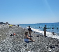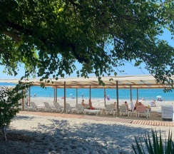 Расположение идеальное, до пляжа 2 минуты, там же есть кафе и стоят крытые шезлонги, песок-галька, ну очень все приятно. Сами номера в отеле уютные и чистые, красота да и только. Мы очень рады, что приехали именно сюда