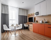 Отличный современный отель. Останавливались на 5 дней. Номер Corner, как квартира студия, есть стиральная машина, небольшая кухня, гладильная доска, сушилка, утюг, фен. Номера очень чистые. Уборка в номере на третий день. Завтраки в отеле вкусные и очень сытные. Сотрудники отеля доброжелательные и приветливые.