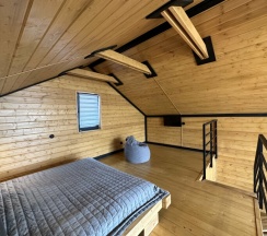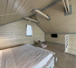 На втором этаже кровать с евро матрасом на 2 спальных места, телевизор