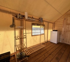 Представляет вашему вниманию «Сафари-тент с фурако». Этот вариант подойдет для душевных и веселых встреч, а фурако у дома поможет вам почувствовать расслабляющую атмосферу.