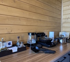 Замечательное место, просто восторг! Уютный домик со всеми удобствами и даже камином, прекрасная свежая и чистая баня и чан фурако, своя мангальная зона и просто безумно красивый вид каждое утро на озеро с возможностью поплавать как на лодке, так и самому спустившись по оборудованному трапику! Очень остались довольны! Обязательно посетим ещё!