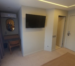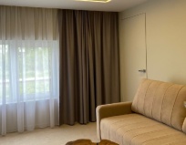 У меня был номер standard с большой кроватью. Шторы в номере black out, так что удалось выспаться. Работаю удаленно, интернет был отличным — даже когда в городе глушили, что удивительно. Надо было погладить платье и пиджак, администратор любезно предложила и помогла с отпаривателем (утюг тоже есть). Если вам важно делать укладки, то лучше брать свой фен: в отеле довольно обычный, слабоват. Брала завтраки — выбор небольшой, но вкусный (советую кашу или сырники). Еще в отеле много камер, на ночь закрывают, поэтому вопрос о безопасности не стоял