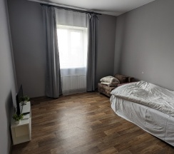 Комнаты очень хорошие, просторные. Есть все для проживания, микроволновка, холодильник, плита, посуда,постельное белье. В самом доме было тихо, от дороги далеко и машин не слышно. И самое приятное, что разрешенно заселение с питомцами!