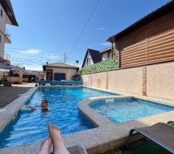 Отлично отдохнули семьей! Спасибо большое вам за приятное времяпровождение. Искали специально с территорией, что бы и позагорать, и ребенку бассейн и нам зону отдыха с мангалом. Всё сошлось так, как и хотели. Вечером отлично отдыхали во дворе, чисто, современно, большой бассейн, номера хорошие, как на фото , переночевать отлично, плюсом есть большая кухня и прохладный холл. Погодка нам выпала очень удачно, каждый день жара, отдохнули супер!