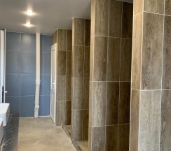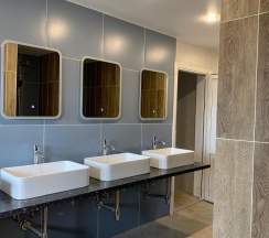 3. Женских душевых всего 1, мужских 3.