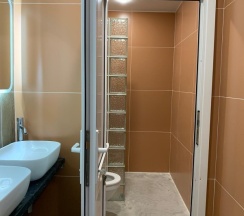 2.В душевых нет штор, палочек и крючков, Возможно потому, что просто не успели доделать.