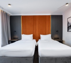 Наш однокомнатный номер с двумя раздельными кроватями – отличный выбор для путешествующих вместе, но предпочитающих личное пространство. В номере предусмотрено все необходимое для комфортного пребывания: рабочий стол, телевизор, мини-бар. В прихожей – зеркало в полный рост и вместительный шкаф. Санузел оснащен душевой кабиной, полотенцесушителем, зеркалом с подсветкой и гигиеническим душем. Чайная станция и сейф помогут вам чувствовать себя как дома.
