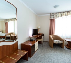 Если вы путешествуете с семьей или приезжаете на длительный срок, то мы готовы предложить Вам наш просторный номер категории «Полулюкс», где есть все необходимое для Вашего комфортного пребывания. Номера находятся на 4 этаже.