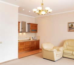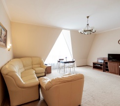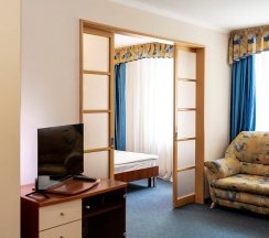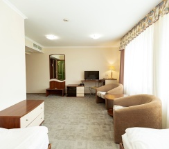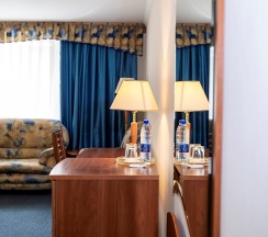 Двухкомнатный номер с прихожей и гостиной. Прекрасно подойдет для деловых встреч, для проживания семьей.