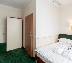 Номер, который идеально подойдет для тех, кто приехал отдохнуть или по работе на пару дней. Окна номера выходят во двор.