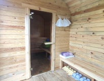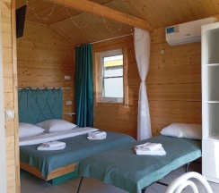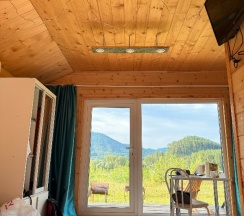 Домики просто шикарные, все удобства продуманы до мелочей, а из панорамного окна открывается замечательный вид на местные красоты, в домиках есть кондиционеры, что очень немаловажно в жаркую погоду. Есть бассейн, достраивается баня. База новая, работает первый сезон, поэтому в домиках всё просто идеально, находиться на пригорке в отдалении от соседей, благодаря этому там тихо и спокойно.