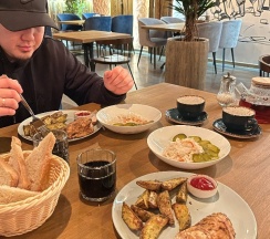 4. Еда в кафе не дорогая, но есть нюанс, ты должен заказать заранее. Если не заказал, сварганят что-то побыстрому. Мы всегда забывали, по этому перестали туда ходить.