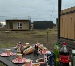 Посетили с мужем комплекс. Просто огромная территория! Много что еще строится, ресторан на стадии завершения строительства, обещают открытие 15 октября. В домике очень уютно. Теплые полы, кондиционер, холодильник. Посуду мы привезли свою, но также можно купить в магазине одноразовую. Симпатичные беседки с гамаками, мангальная зона ( для проживающих гостей бесплатно). Мы ловили рыбку с берега, на ресепшене предложили котелок для приготовления улова, вечером парились в баньке- просто супер! В общем, для комплекса, который открылся совсем недавно, все очень даже хорошо) Обязательно приедем весной!