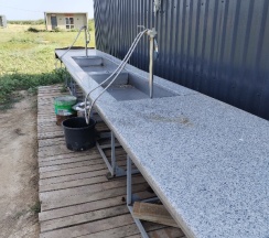 10. Почистить рыбу и помыть казан можно рядом с причалом, там 2 большие раковины с лейками и столешницы каменные.