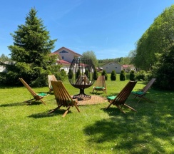 Мы провели замечательный корпоратив на экоферме. Это было что-то новое для нашей компании и мы не прогадали. Выбирали из нескольких площадок, эта подкупила своей большой зеленой территорией и атмосферой домашнего уюта. Живописное место, окруженное лесами и полями, что позволило нам провести тимбилдинг по пахоте, заготовке сена, рыбалке и даже дойке коров и коз. Мы снимали большой охотничий домик на 50 человек: обслуживание, повар, сервировка, свежее мясо, продукты, программа с ведущим, игры, все входило в наше индивидуальное предложение. В общем мы ни о чем не думали, вернее мы только подумали, нам уже организовали. В целом замечательное место, как для отдыха с семье, так и большой компании!