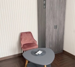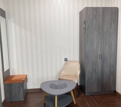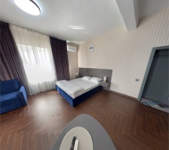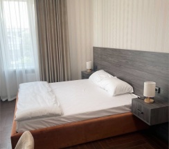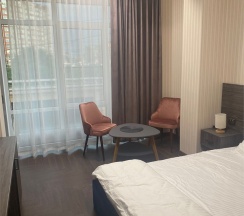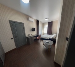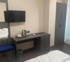 Двухместный номер для комфортного проживания. В номере мини-холодильник, рабочий стол, журнальный столик, стулья, все банные и одноразовые гигиенические принадлежности. Так же в номере большой диван который раскладывается-это дополнительное спальное место. Номера все новые. Мы заботимся о здоровье наших гостей и поэтому проводим уборку дезсредствами и в помещениях периодически включаем облучатели-рециркуляторы воздуха. Каждое утро гости могут насладится бесплатным вкусным завтраком в формате-шведского стола. Вся городская инфраструктура находится рядом. Песчаный пляж и парк-аллея в пешей доступности от нас.
