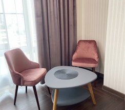 Двухместный номер с панорамными окнами для комфортного проживания. В номере мини-холодильник, рабочий стол, журнальный столик, стулья, все банные и одноразовые гигиенические принадлежности. Номера все новые. Мы заботимся о здоровье наших гостей и поэтому проводим уборку дезсредствами и в помещениях периодически включаем облучатели-рециркуляторы воздуха. Каждое утро гости могут насладится бесплатным вкусным завтраком в формате-шведского стола. Вся городская инфраструктура находится рядом. Песчаный пляж и парк-аллея в пешей доступности от нас.
