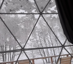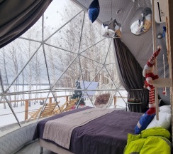 Отдыхали семьей в глэмпинге с 21.01 по 23.01. Это просто удивительное место, на территории очень уютно и чувствуешь с первых шагов то самое ощущение единения с природой. Везде висят яркие гирлянды – это очень красиво и волшебно, особенно в холодные зимние дни.