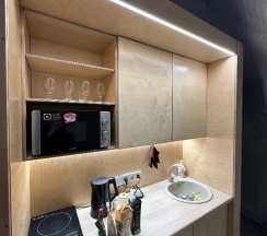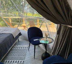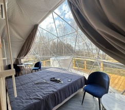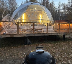 Прошедшие выходные в глемпинге Holidays Forest удались! Комфорт номера сочетался с очарованием дикой природы. Наш уютный дом/сфера был оборудован со вкусом и продуманностью до мелочей: удобная кровать, мягкие пледы, чистое белье, все необходимые кухонные приборы. Мы с удовольствием пользовались грилем, принимали горячие ванны в купели на свежем воздухе. Персонал дружелюбный и отзывчивый! В целом отдых в глемпинге стал настоящим отдыхом для души и тела! Рекомендую всем, кто хочет насладиться комфортным отдыхом на природе. Мы обязательно вернемся снова)