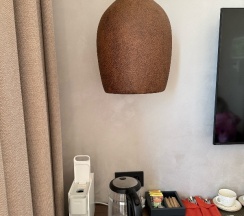 В номере есть всееее до мелочей , так приятно ! Даже мини пилочка для ногтей , ватные палочки. Утюг и гладильня доска в номере 🔥 кофемашина , чай , приборы столовые , удобная кровать с ортопедическим матрасом и подушками !