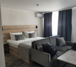 Очень уютный, стильный и современный отель. В номере есть всё для комфортного проживания. В душевой есть фен, расческа, зубной набор, бритвенный набор, гель для душа, шампунь, и даже бальзам для волос и лосьон для тела! Очень вкусные завтраки. Мы проживали в номере для 2 взр. Удобный матрас и мягкие подушки. Кондиционер в номере спасает от грозненской жары.