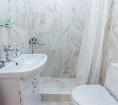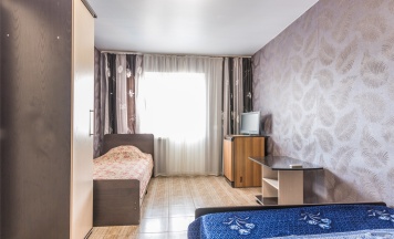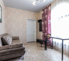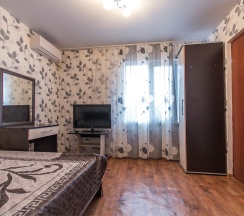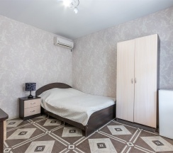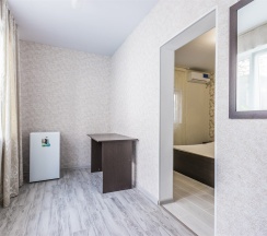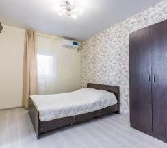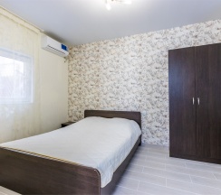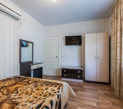 Однокомнатный номер. Площадь: 16 кв.мДвуспальная кровать, шкаф, столик, трюмо, зеркало, кондиционер, холодильник, чайник, телевизор. Уборка, смена полотенец и постельного белья 1 раз в 5 дней. Санузел в номере.