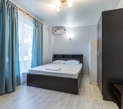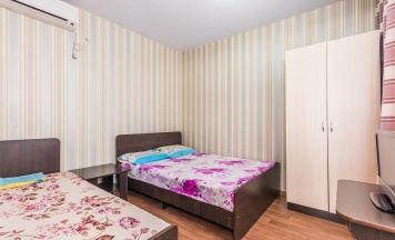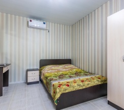 Однокомнатный номер. Площадь: 15 кв.мДвуспальная кровать, шкаф, столик, трюмо, зеркало, кондиционер, холодильник, телевизор, чайник. Уборка, смена полотенец и постельного белья 1 раз в 5 дней. Санузел в номере.